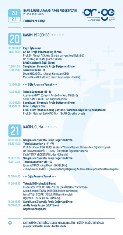 BARÜ 8. Uluslararası Ar-Ge Proje Pazarı Program Akışı