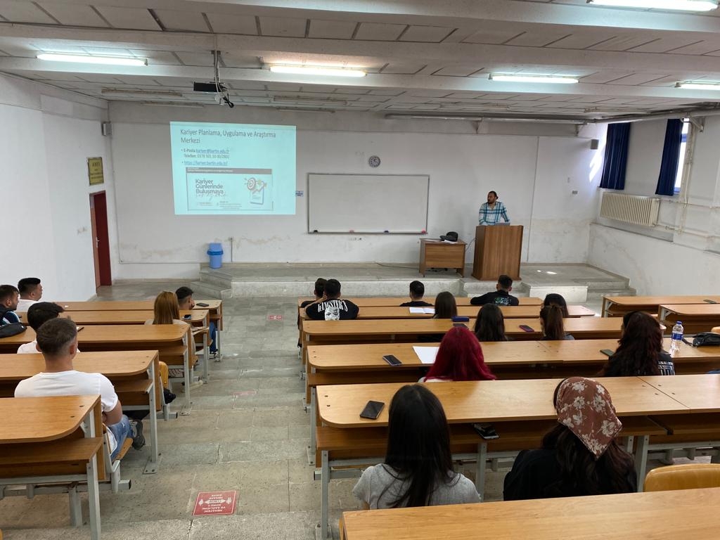 Öğrencilerimizle akademik danışmanlık faaliyetleri kapsamında danışmanlar Öğr. Gör. Dr. Cihangir Kasapoğlu ile Öğr. Gör Yahya Akkaya tarafından yapılan toplantılarda "Kariyer Planlama, Uygulama ve Araştırma Merkezine Erişim, Mezun Bilgi Sistemi," konuları anlatıldı, ÇAP ve Girişimcilik konularında bilgilendirmeler yapıldu. Toplantıya 1. sınıflardan  30 kişi 2. sınıflardan 49 kişi olmak üzere toplamda 80 kişi katıldı.