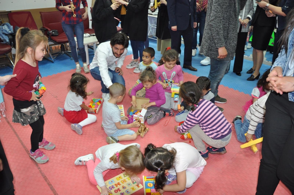 Bartın Valisi Sinan Güner’in eşi Uzm.Dr. Beyhan Güner’in girişimleriyle Bartın Valiliği Sosyal Yardımlaşma ve Dayanışma Vakfı’nın geçtiğimiz haftalarda başlattığı “Oyuncak” kampanyasına ağabeylerinden ve ablarından anlamlı destek geldi. Kampanyanın ilk resmi bağışı üniversite öğrencilerinden geldi. Bartın Üniversitesi Meslek Yüksekokulu Halkla İlişkiler ve Tanıtım Programı Öğretim Görevlisi Özkan Avcı öncülüğünde oyuncak kütüphanesi için alınan oyuncaklar teslim edildi. Sosyal Yardımlaşma ve Dayanışma Vakfı’nın Valilik binası alt katında bulunan proje uygulama merkezinde eğitim gören 4-6 yaş grubu öğrencilere oyuncaklar teslim edildi. Oyuncakların teslimi sırasında Bartın Valisi Sinan Güner’in eşi Uzm.Dr. Beyhan Güner hazır bulundu. Oyuncaklarla doyasıya oynayan minik öğrenciler, üniversitede okuyan ağabeylerine ve ablalarına teşekkür ettiler. Üniversite öğrencileri ile minik öğrenciler oyunlar oynayıp gönüllerince eğlendiler. İlk resmi bağışın yapıldığı etkinliğin sonunda hatıra fotoğrafı da çektirdiler.