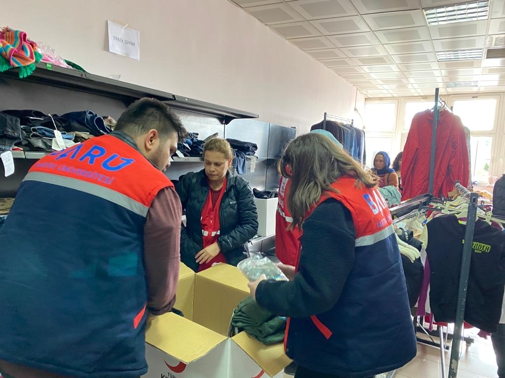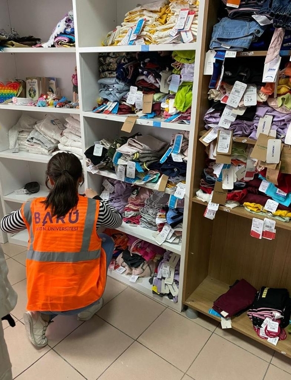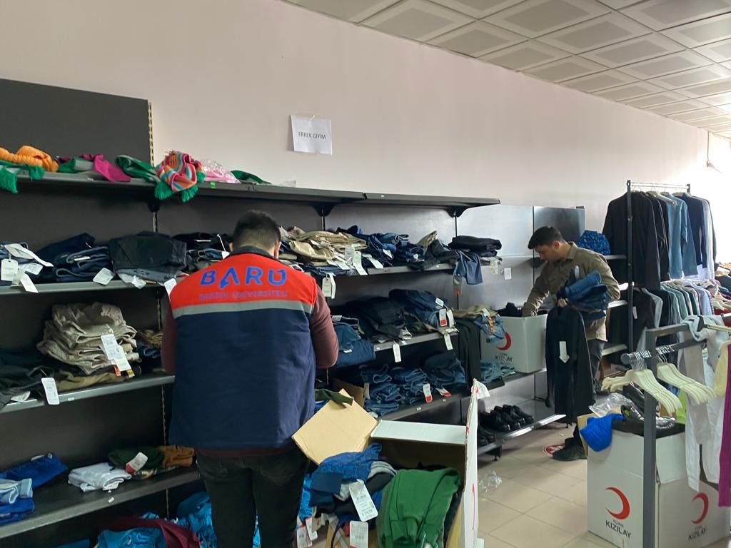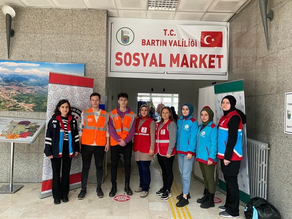 Bartın Valiliği koordinesinde Bartın’da konaklayan deprem mağdurlarının ihtiyaçlarının karşılanabilmesi için açılan “Sosyal Market”te Bartın Meslek Yüksekokulu Halkla İlişkiler programı öğrencilerimiz gönüllü olarak görev alıyor. Bartın halkı tarafından bağışlanan gıda, ekmek, kıyafet, hijyen ürünleri, çocuk bezi ve mama gibi birçok ürünün depremzedelerin kullanımına sunulduğu markette ihtiyaçların karşılanması için büyük hassasiyet gösteriliyor. Bartın Sosyal Yardımlaşma ve Dayanışma Vakfı, Türk Kızılay Bartın ve Genç Kızılay Bartın koordinasyonundaki çalışmalarda öğrencilerimiz ihtiyaç olduğunda dönüşümlü olarak gönüllülük faaliyetinde bulunuyor. 18.03.2023